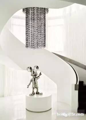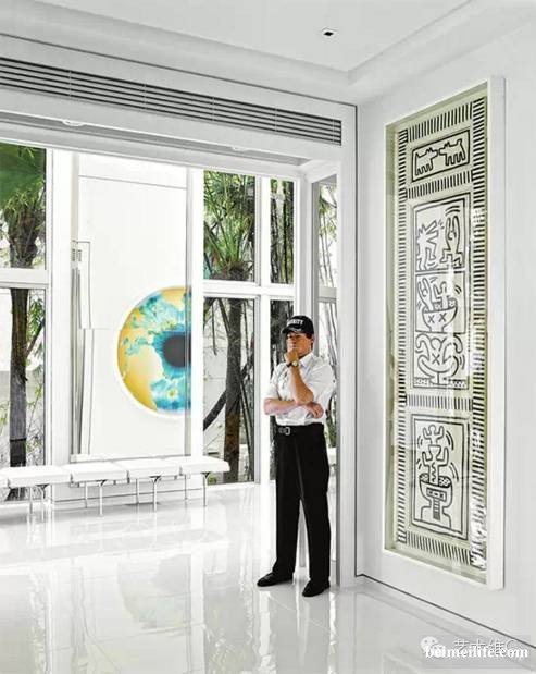Hilfiger和妻子在挑选豪宅的时候,就计划着空间一定要足够大,要让艺术品塞满全家,可以像画廊一样,呈现他们丰富的艺术收藏。 因为Hilfiger的初衷就是想拥有一个具有画廊功能的空间,一般6米高以上的房子才适合做画廊,所以这栋房子的厅堂天棚很高,墙壁很宽,并且四周都是纯白色,这些都是为了有利艺术品陈设。
