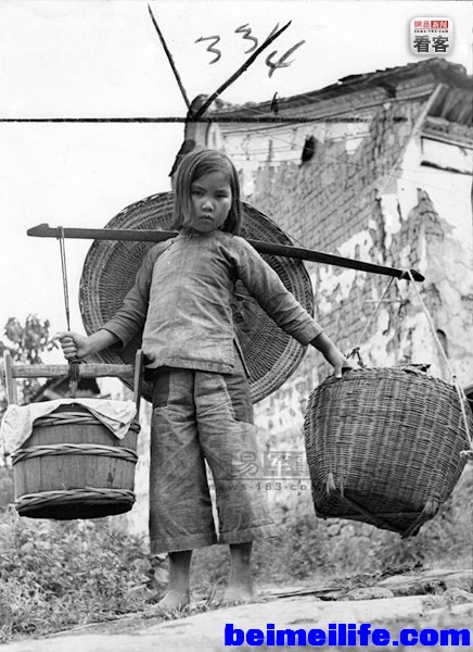 除了参军报国以外,还有更多的中国的孩子直接参加到支援抗战的后勤工作当中。图为在修筑成都新津机场工程中,孩子们也加入了建设大军。他们在挑石头,有人负责杂碎他们。