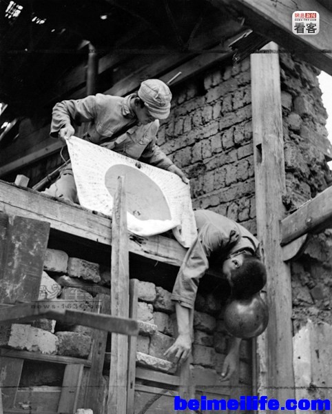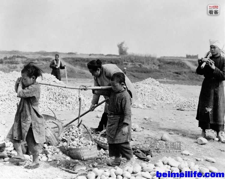 ) N% e- P' @ @& W+ r% R除了参军报国以外,还有更多的中国的孩子直接参加到支援抗战的后勤工作当中。图为在修筑成都新津机场工程中,孩子们也加入了建设大军。他们在挑石头,有人负责杂碎他们。: {8 P( |0 H8 D