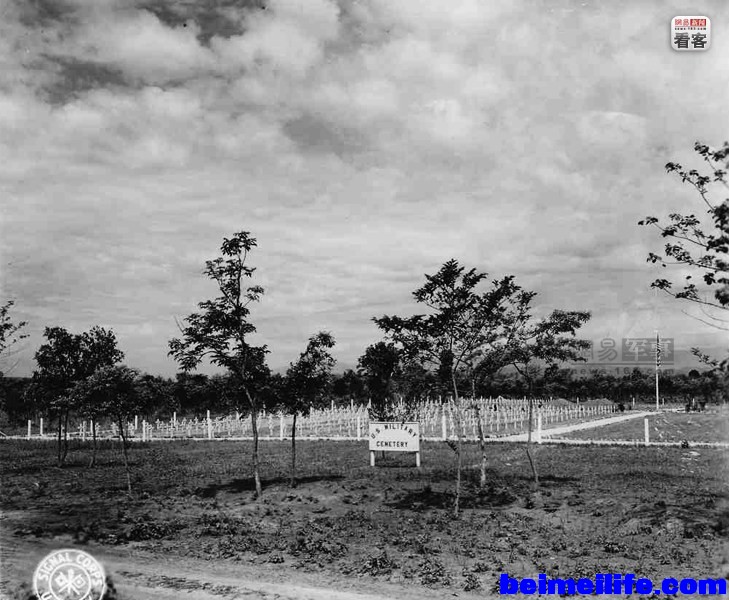 在缅甸美军有一支名为麦支队的特战部队和中国驻印军一起参加了密支那战役等残酷的战斗,战后这支美军被改编为大名鼎鼎的游骑兵特种部队,直到今天美军游骑兵特种部队的徽章上还绘有青天白日徽,以铭记那段历史,那段难以忘怀的记忆。图为1945年5月5日,缅甸密支那美军墓地。摄影师:迪克军士。美军第164照相连。