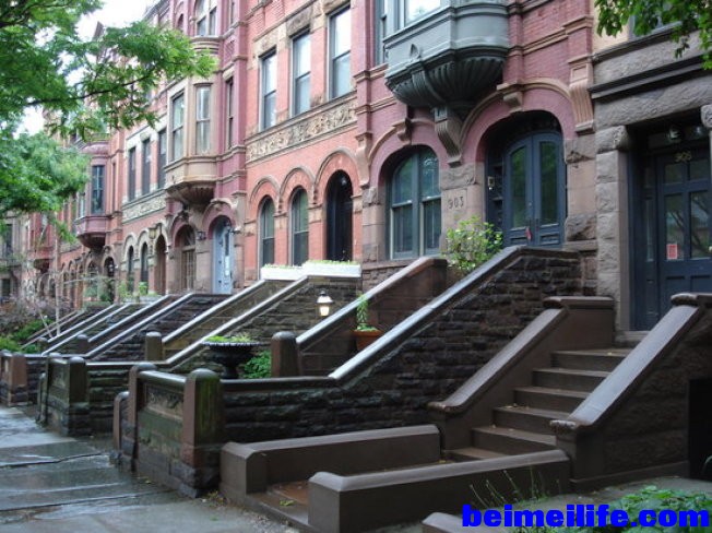 " ~1 g- r8 K7 ]4 Y2 ^) ?. X这是布碌仑黄金地段“公园坡(Park Slope)”地区的著名高级住宅褐石屋(brownstone)