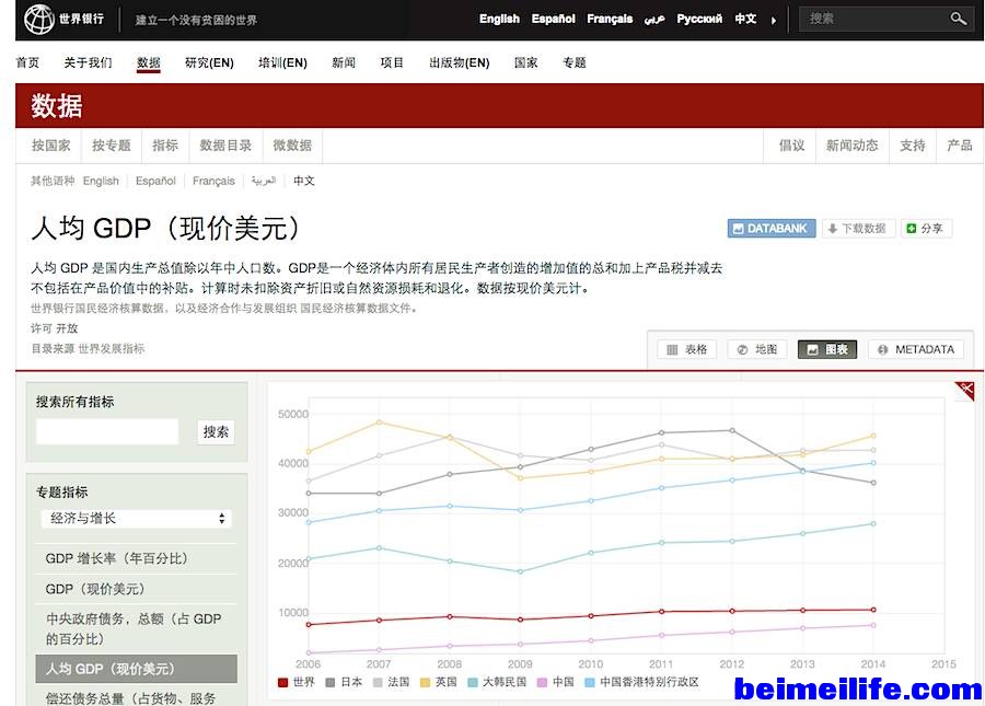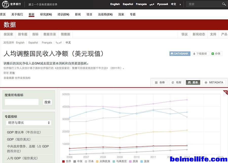 2 A7 b$ l0 m( E2 Q6 `5 I: A' \% i但究竟富裕到什么程度呢?我不禁有些好奇,于是去世界银行的网站看看人均收入的统计数据(见下表)。这一看不要紧,我还真有点灰心,因为按2013年(2014年还没有统计出来)世界银行统计的人均收入,在166个有数据的国家里,中国只以人均5470美元位于第71位,比起马来西亚(8356美元)要少近三千美元,比韩国(21096美元)和日本(31635美元)少得就更可观了,甚至不如我们经常援助的委内瑞拉,真的有点让人情何以堪的感觉。