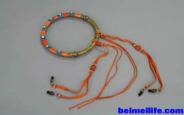 类似现代人发箍。金约并不影响戴冠,反而是冠沿的装饰。贵重的金约会缀有金云、东珠、青金石或珊瑚之类,金约后边会缀有珠串,同样金约有档次之分。 t3 v0 \& Z8 l* U$ L$ s# I1 T* i