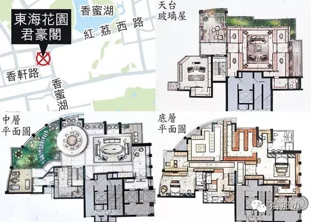 3. 2012年2月23日,多间报章报道曾荫权退休后,养老居所深圳东海花园君豪阁面积达6千多平方尺的复式单位,是由香港数码广播主要股东兼董事黄楚标旗下的东海集团兴建,获破例放租约 8万元人民币(约 9.85万港元)及收取回报极低的租金。香港数码广播在2009年时获曾荫权批出牌照,此外,该单位是由东海聘请何周礼做室内设计,费用由东海承担。被采访的有关人员但不肯透露租金和装修费金额,只称装修全用“国产货”,并没有花费传言中的 1,400万元。