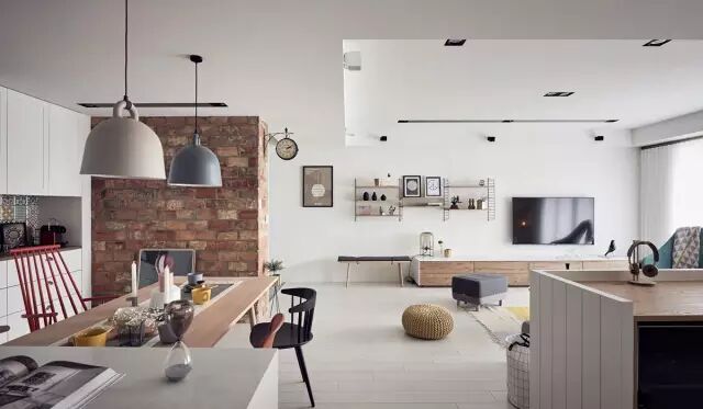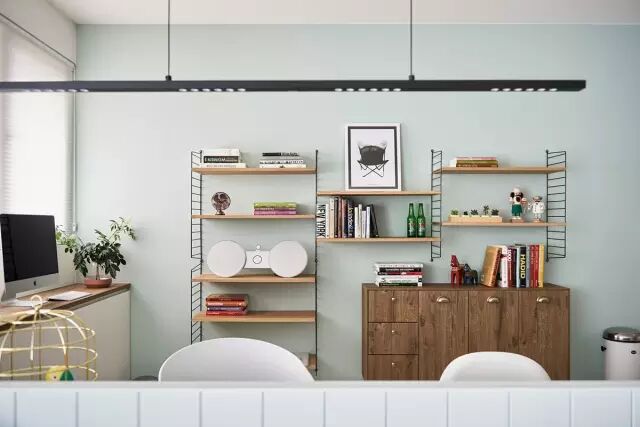 在这里你能看到客厅、工作间、餐厅,不同的功能空间被家具巧妙的划分开来。