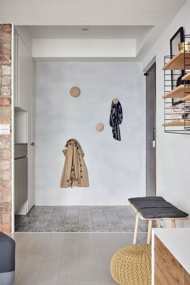 玄关的位置设计非常简洁,根据空间的曲线定制了收纳柜,可以将鞋帽、大衣都好好的收纳起来,凸显北欧风的简约干练。