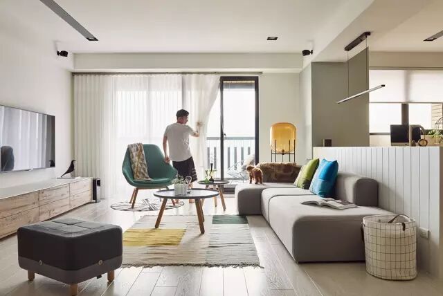 看起来更宽敞,阳光透过大大的窗户照进客厅,自然而明亮,灰色的沙发与室内的绿植相呼应,充满生机。赶紧和小编一起来欣赏吧!