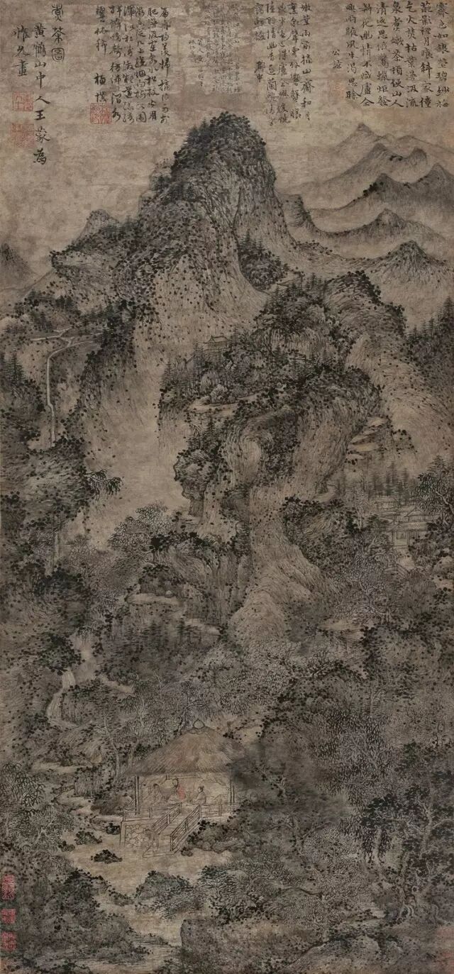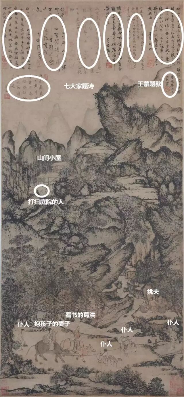 巧的是,王蒙的人生经历,与葛洪非常相似,做过官,后因社会动乱,朝政衰弱,产生了归隐的念头,于是把葛洪作为了自己的精神寄托和灵魂偶像,想做个那样的世外高人,画了这幅隐逸山水画。