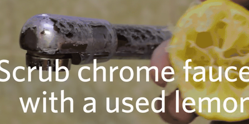 3.清洗水龙头 ▼水桶头上残留的污垢,用柠檬擦拭,再用厨房纸擦干,污垢一下就不见了,和新买的一样。 ! @3 d+ y3 U/ a+ ~9 S