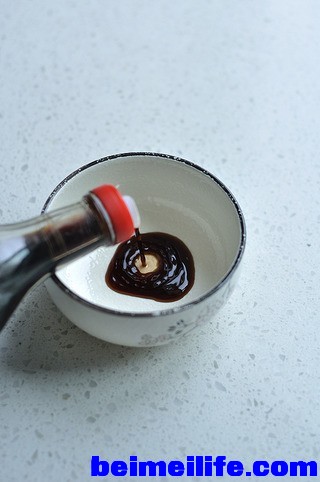 ' c+ }% k2 r& H7 h取干净小碗,倒入两汤匙陈醋。-