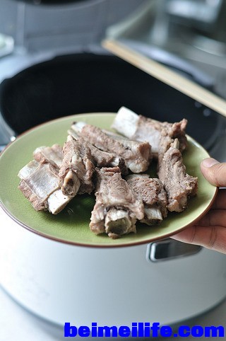 把压好的猪肋排盛出,控净水分。-
