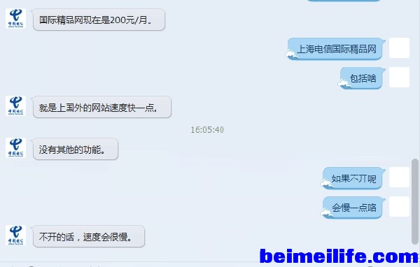 % M6 {3 k3 m' z! @. X! @ 然而,就在网友还在为慢如蜗牛的网速焦虑的时候,今天,上海电信正式上线了一款名为“http://sh.189.cn/NOS/”的国际带宽加速产品。上海电信相关人士表示,这一产品可缓解用户连接外网提速需求,提升访问境外服务器的速度和稳定性。用户在访问外网时,下行速率可达50M、上行可达10M。据了解,上海电信推出的这个国外网站加速服务,主要针对海淘和游戏用户,不过,被墙的网站依然无法访问。上海电信官网显示,该服务售价为每3小时提速服务收费2元。网友算了一笔账,若要全天候24小时获得该服务一个月则需要480元。于是,有网友质疑,这一服务的推出等于是限制了用户原本应得的服务,通过再购买的方式强行让用户买单,这一做法与抢钱无异。