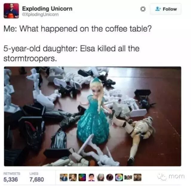 5岁女儿:Elsa杀死了所有士兵(有时候,小孩子的心理好可怕)。