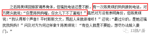 陈美琪表示,该小姐还骚扰自己的母亲,骂自己“下不了蛋”。