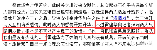rio心疼wuli老干部。。。 之后关之琳主动担任霍建华MV女主角,不但分文未取,还自备化妆师和发型师,说这是她提前送给霍建华的生日礼物。 上《康熙来了》大谈择偶观,表示喜欢帅男生。(立刻脑补王国旌、马清伟、刘銮雄画风…) 然而,霍建华却对媒体撇清关系,说只接受10岁以内的姐弟恋。 -----------------------------------
