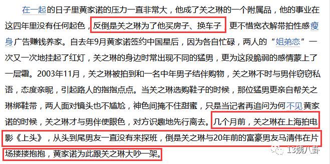 3、黄家诺(情史长度:2001年-2004年) 和大刘分手后,赚得盆满钵满的关之琳似乎想通了,和小8岁男模黄家诺交往,开始享受美好肉体。 但在这段关系里,男方不仅被诟病吃软饭,甚至有戴“绿帽子”之嫌。 关之琳被曝出和马清伟“旧情复燃”,即在和黄家诺交往期间。 2004年,黄家诺从关之琳家搬出,两人正式分手。 不过,关之琳在被曝出和前男友马清伟“余情未了”的同时,也传出和霍建华的姐弟恋绯闻  当时关之琳正在和霍建华拍摄电影《做头》,片中不乏激情片段。 ↓↓就连电影海报也主打激情挂(酱的老干部好辣眼==)