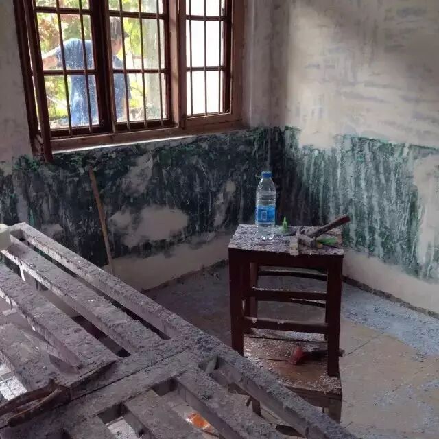 在网上联系了两名工人, 下一步,是铲墙皮。 一个上午的时间, 客厅已经丑得不忍直视了。