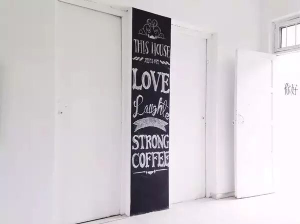 他还在两个门之间的窄墙上, 刷了黑板漆, 自己动手往上面画画, 顿时让人眼前一亮。