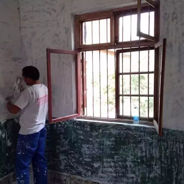 接下来的刷漆工作, 他干脆亲自操刀, 拿着从网上买的木器漆, 把门窗刷了一遍又一遍, 满意为止。
