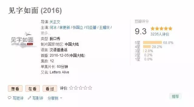 12月初,《见字如面》首期问世, 在娱乐至上的网综里,/ L3 z+ r* H: r1 N4 I2 a' c: M