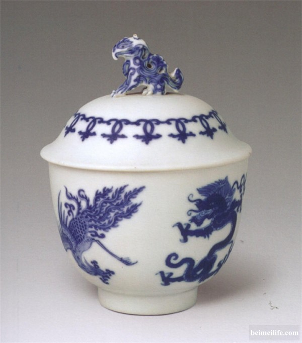 【文化典藏】康熙官窑青花龙凤纹天鸡盖碗(北京故宫博物院藏) ' S+ U' V$ S$ B8 b7 h