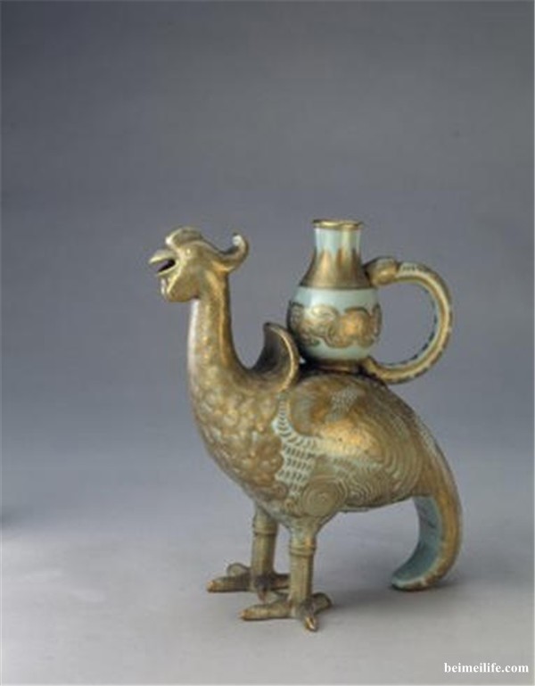 【文化典藏】清乾隆御窑东青釉描金天鸡花浇(北京故宫博物院藏)