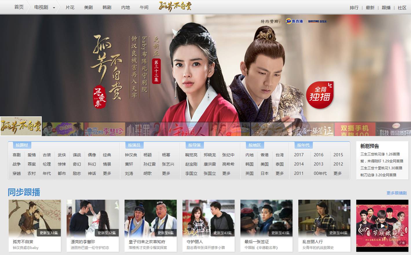 " o$ `" S6 D5 T2 H4 d& c不仅是近期热剧《孤芳不自赏》和《漂亮的李慧珍》,即将播出的《三生三世桃花缘》(1.26首播)和《三生三世十里桃花》(1.30首播)都可以在乐视视频上观看。