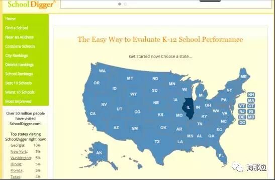 美国学区的划分,学生的入学条件 美国在整个基础教育期间,遵循的都是划片入学的原则,全国大概15000个学区。学生就近入读居住地址学区内的学校。如果对该学区内学校不是特别满意,也是可以申请其他学校,但是申请会排在该学区申请人的后面。 美国不实行户籍制度,也就是说,作为推高房价的户籍因素在美国不存在。划片入学只跟你是否居住在本学区有关,与你是否拥有房子的产权没有关系,因为租房子一样能够入学。 美国的学区房价不是特别离谱,另外一个重要因素是教育资源的分布相对分散,能够用其他方式满足家长的需要。美国的基础教育跟高等教育一样,都是公立和私立两条发展线。也就是说,有钱不一定非得通过买房才能享受到优质教育,完全可以将买房的钱用来上好的私立学校。众所周知,美国的高等教育中,顶尖大学都是私立的。相对而言,美国的基础教育要好些,不少好学校都是公立的。不过,一般来讲,私立学校都是好学校,但比较贵。比如,奥巴马的两个女儿所在的西德威尔友谊学校的学费,2013到2014学年度的学费为3.5万美金。但也正因如此,降低了学区房的绝对价值,因为买房与接受优质教育没有必然关系,如果一个学区的房价实在太高,你完全可以不买,去让孩子上私立学校。 不过也有一些观点认为美国的私立学校并不一定是什么精英教育。因为有很一部分私立学校是教会学校,因为公立学校是禁止宗教教育的,所以部分选择私立学校的家庭是为了维护其宗教传统,且私立学校的教学质量未必高于公立学校,私立学校的学生成绩略好于公立学校,但这更多是家庭背景造成的,而不是学校造成的。这个就见仁见智啦~ 想要了解各州各城市的学校,可以通过这个网站进行查询:http://www.schooldigger.com/,网站的界面是这样的: