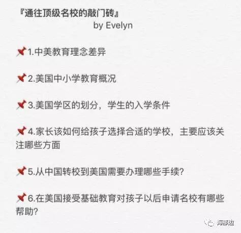 关于evelyn 大家好,我是Evelyn,今天的主讲人。感谢华人说海外栏目邀请我作为今天的嘉宾给大家来讲讲海外教育。今天我们的主题叫做《通往顶级名校的敲门砖》,这里要再细化一点,我们今天讲的东西主要都是针对美国。那么接下来我会从以下几个方面来说说美国的教育,大家可以先看看我今天分享提纲。