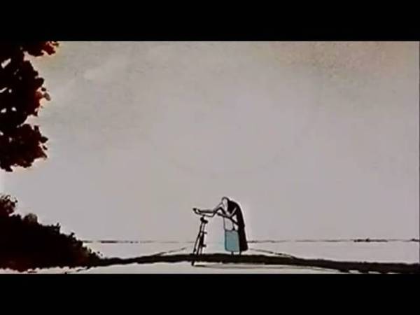 丈夫望着河面百无聊赖,儿女在河边嬉戏。而她却伫立在岸上,眺望着远方,就像小时候那样。