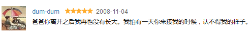 影片打动我们的,也正是这种思念的力量。之所以这种力量能够打动我们,是因为我们每个人,一定都有一个一直思念的人。5 l$ R, N# [+ J8 X! b% w! {( ]9 i