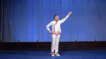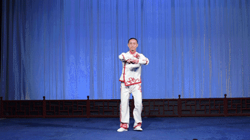 $ z! r/ ^- ]8 u$ n8 `戏曲元素贯穿始终。 热身运动: “腕花小云手”+“亮相” : e3 w7 A8 ~+ G# V+ ]