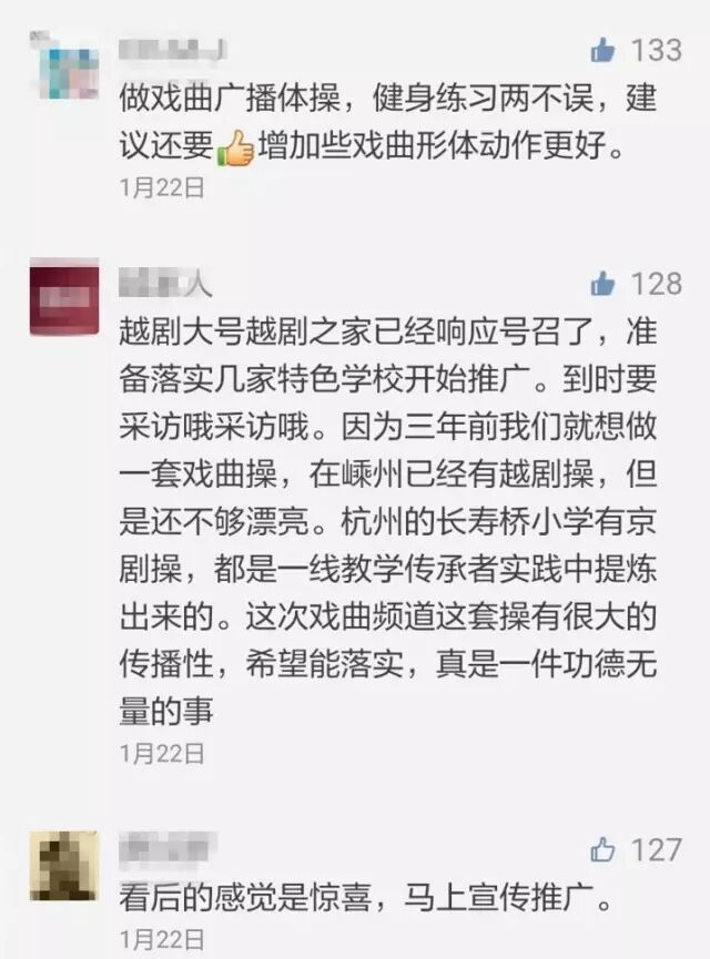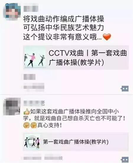a9 i, ~% b0 E据了解,已经有一些学校, 准备让学生做这套戏曲广播体操。 参与创编的戏曲演员们, 也接到一些机构的电话, 邀请他们亲自去教。 : ^4 K! {- D* p9 c$ t5 W9 H