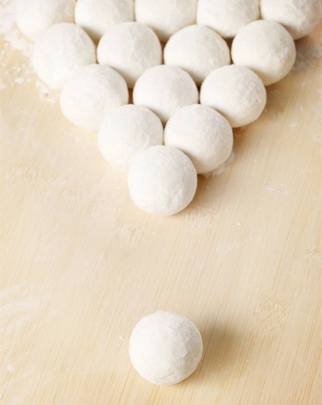 糯米粉需要水磨得非常细,可以通过 200 目的细筛子。用水和成面团后,放置一会儿“醒”面。