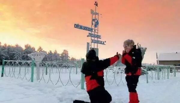 张昕宇在北极圈的“寒极”奥伊米亚康向梁红求婚