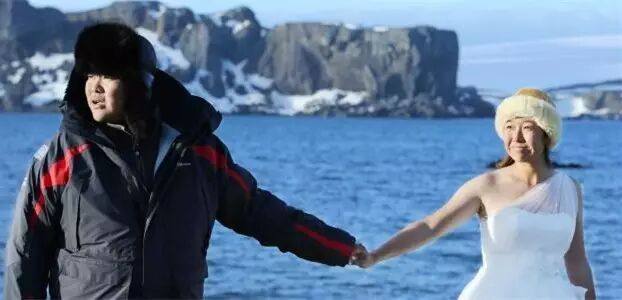 虽然在南半球是盛夏,但当时南极气温仍是零度,梁红穿着单薄的婚纱,瑟瑟发抖,但脸上灿烂的笑容却总是收不住。再冷,只要旁边是你,那么心也会笑。