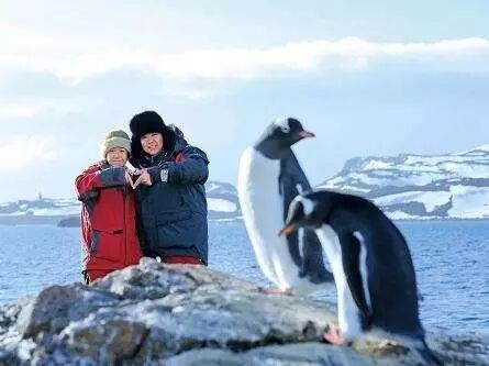 张昕宇、梁红在南极与企鹅合影