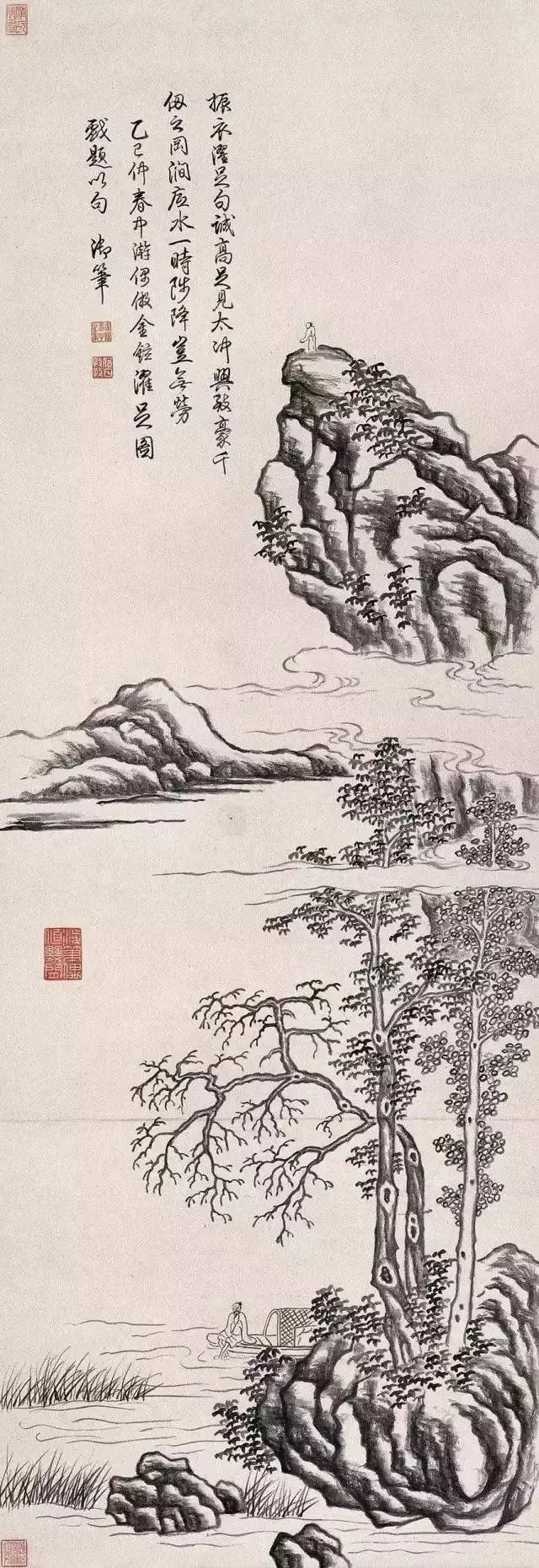 但是由于乾隆皇帝, 并无很深的绘画功底, 他学院体花鸟画时, 即使作一幅小画也很吃力。 所以,他转向了注重“古意”, 即是写实功力上, 可以适当放松要求的“文人画”。