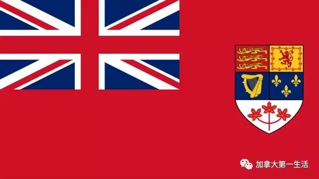 从加拿大联邦成立到1965年这一个世纪,加拿大国旗都是在红船旗(米字旗在左上角约占四分之一的红旗)上加上象征联邦各省的纹章。纹章的设计几经改动,最后一个版本是这样的: