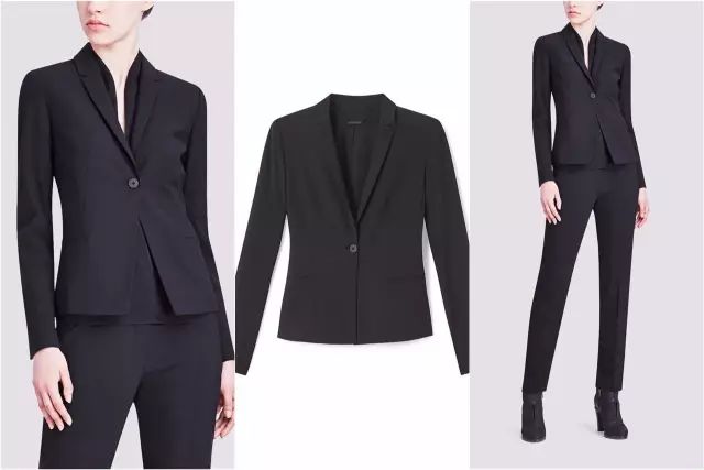 西装最好能有精细感,精致感,以及低调感。而上图均没有,显得凌乱,甚至有一种粗制滥造的感觉。这是一套elle tahari的套装,人民币2736,面料是95%的羊毛,性价比已经很感人,打折季一千多可以拿下。但在国内,我们很难找到这样性价比的西装。▼