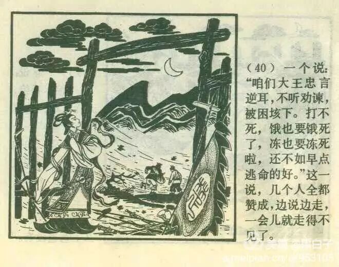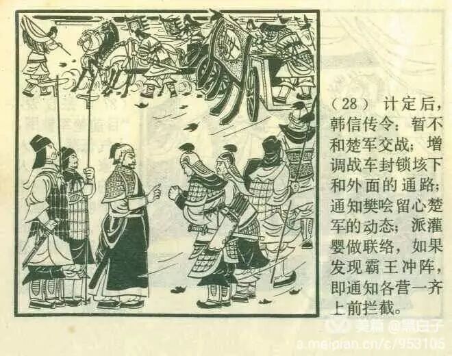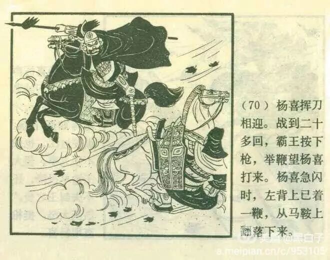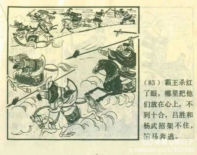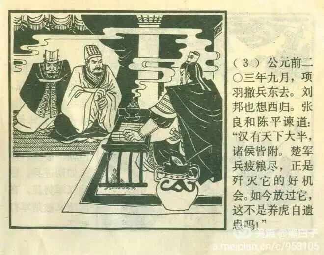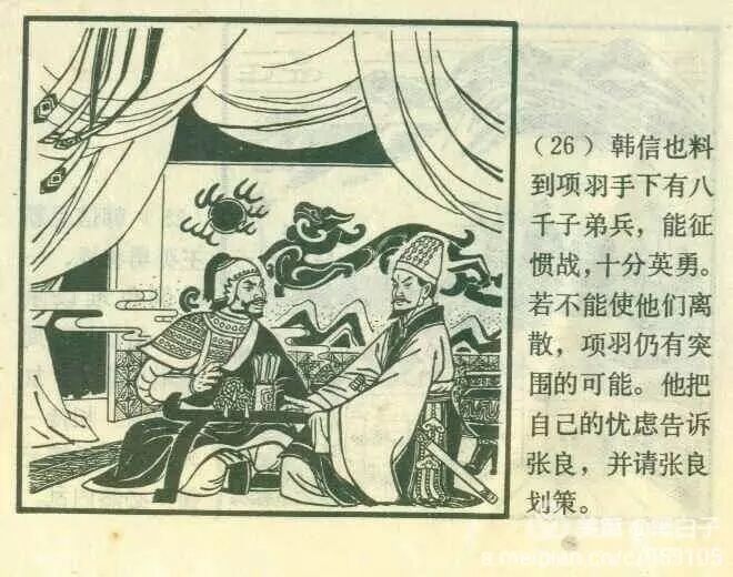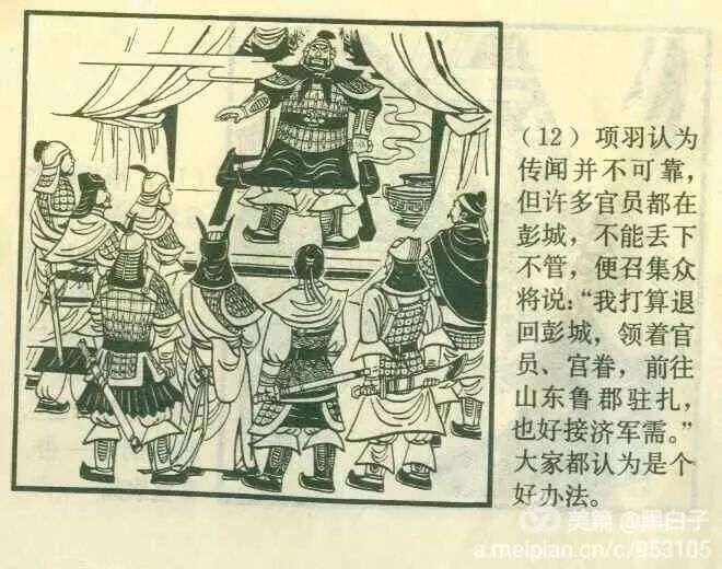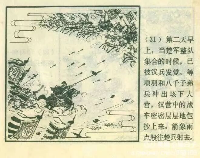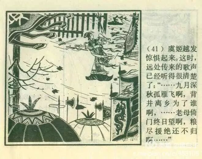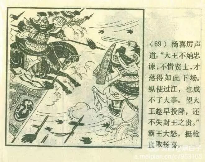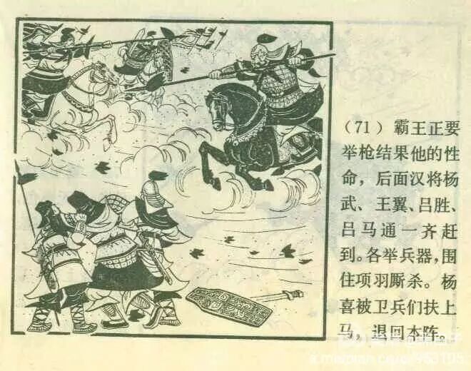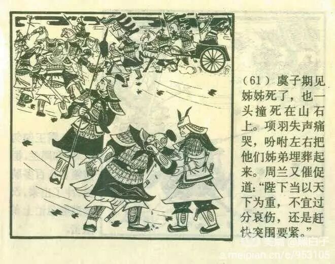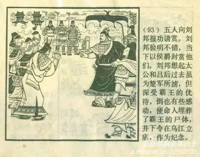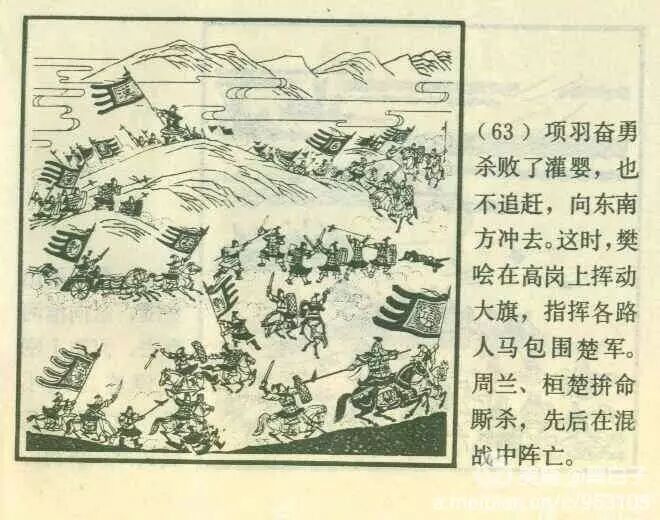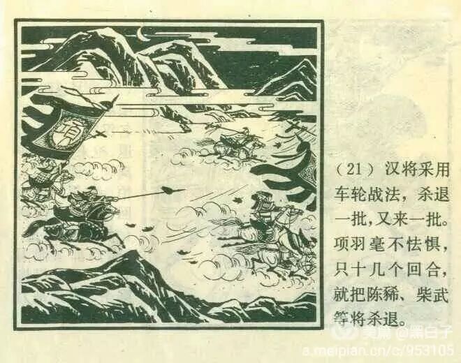 1980年由上海人民美术出版社出版,根据历史故事改编的连环画《霸王别姬》,讲的是力拔山气盖世的项羽于垓下四面楚歌,乌江自刎别虞姬的悲壮故事。