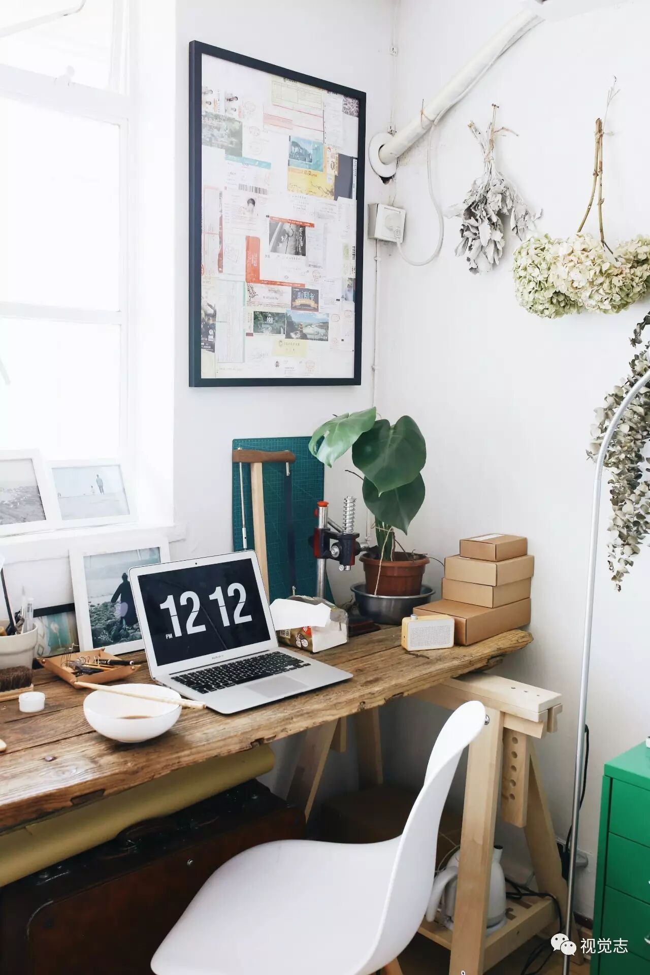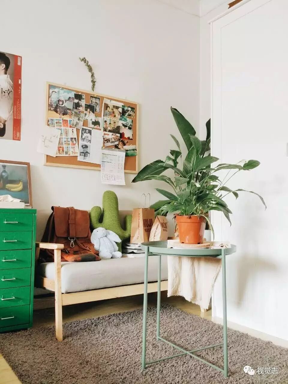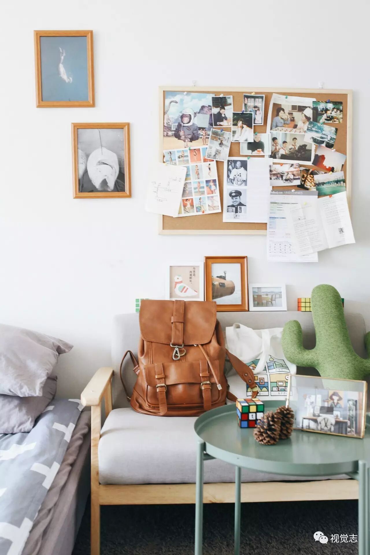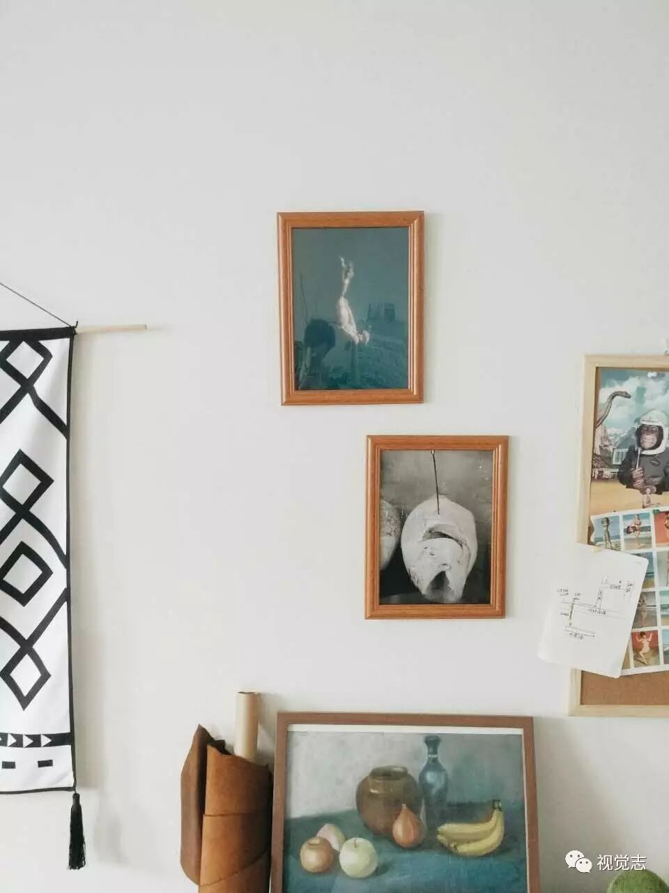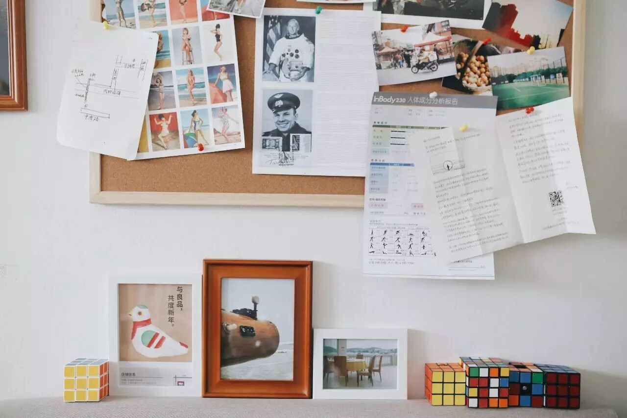 软木板贴上自己拍摄的照片和杂志上剪下来的剪报,就成了美美的照片墙。