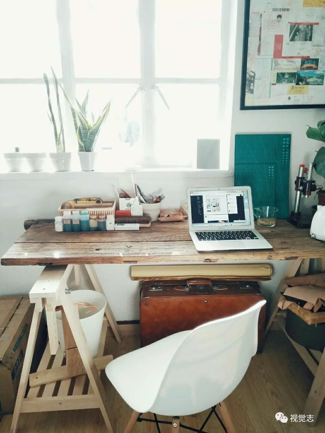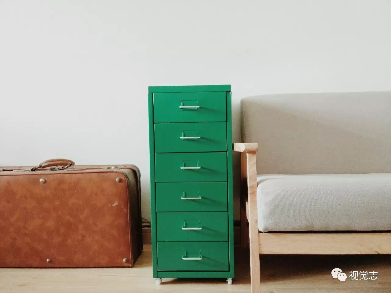 因为预算有限,所以很多东西都是淘来的,或者捡来的,比如这个捡来的皮箱,品相竟意外的好。