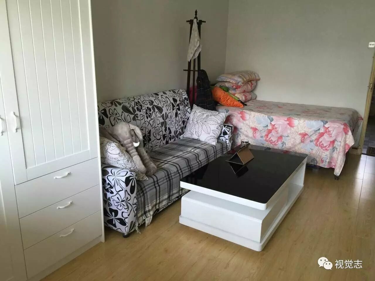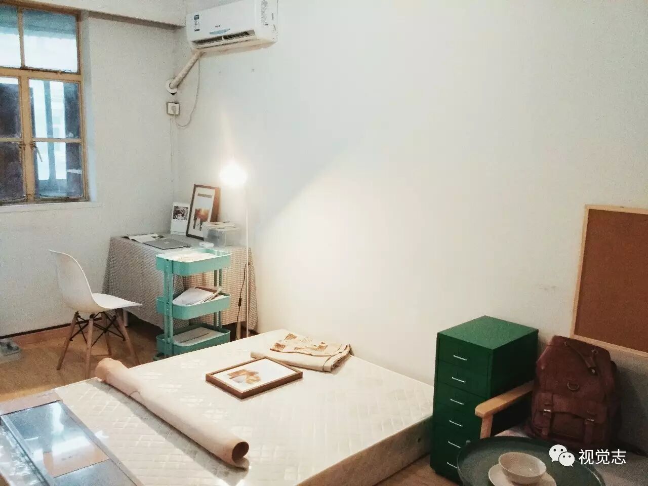 喜欢睡大床,网淘了一块床垫,垫在房东原来的床板上,像极了榻榻米。