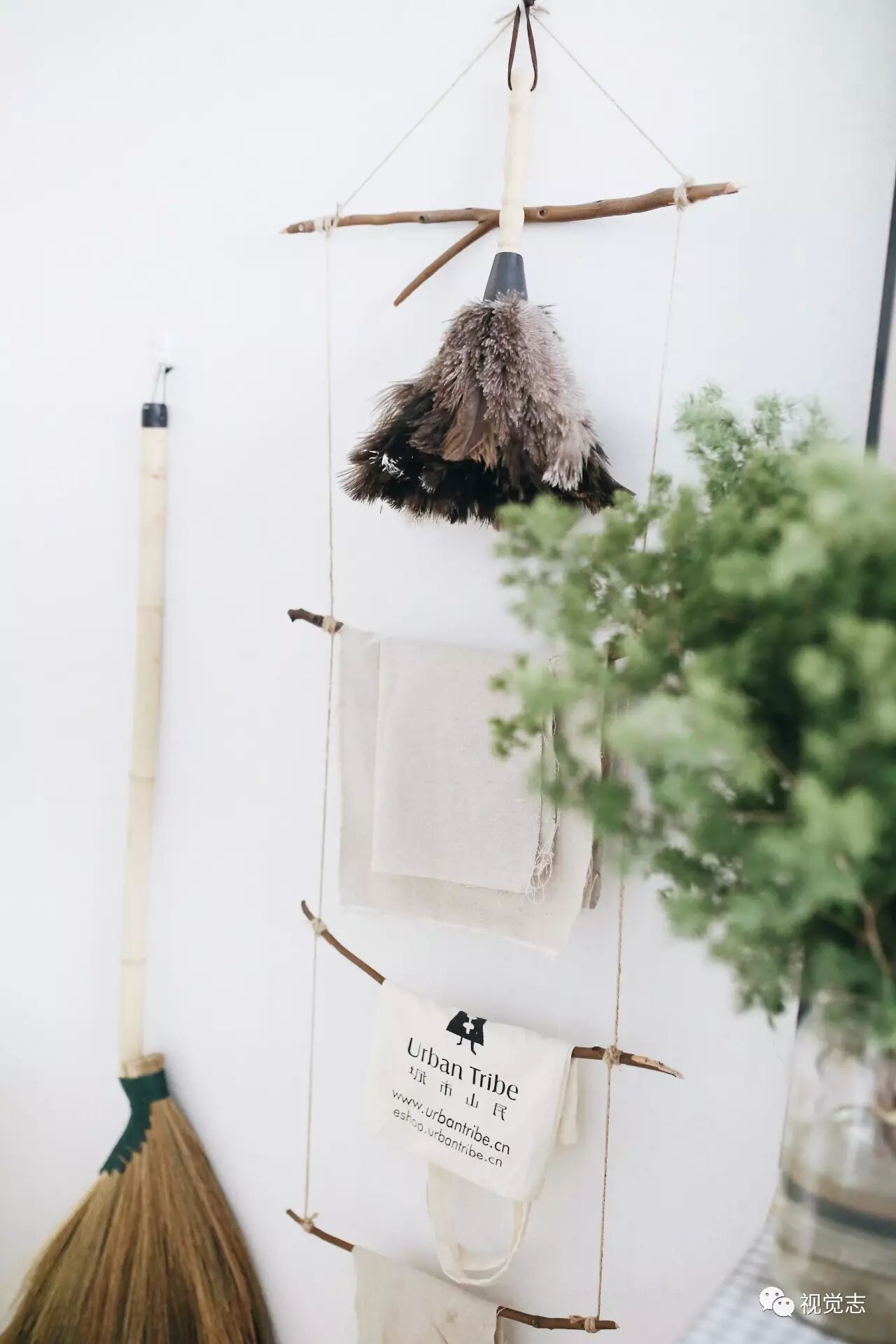 剩下的树枝和麻绳做成了一个可以挂抹布的地方