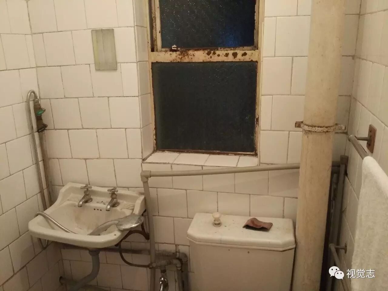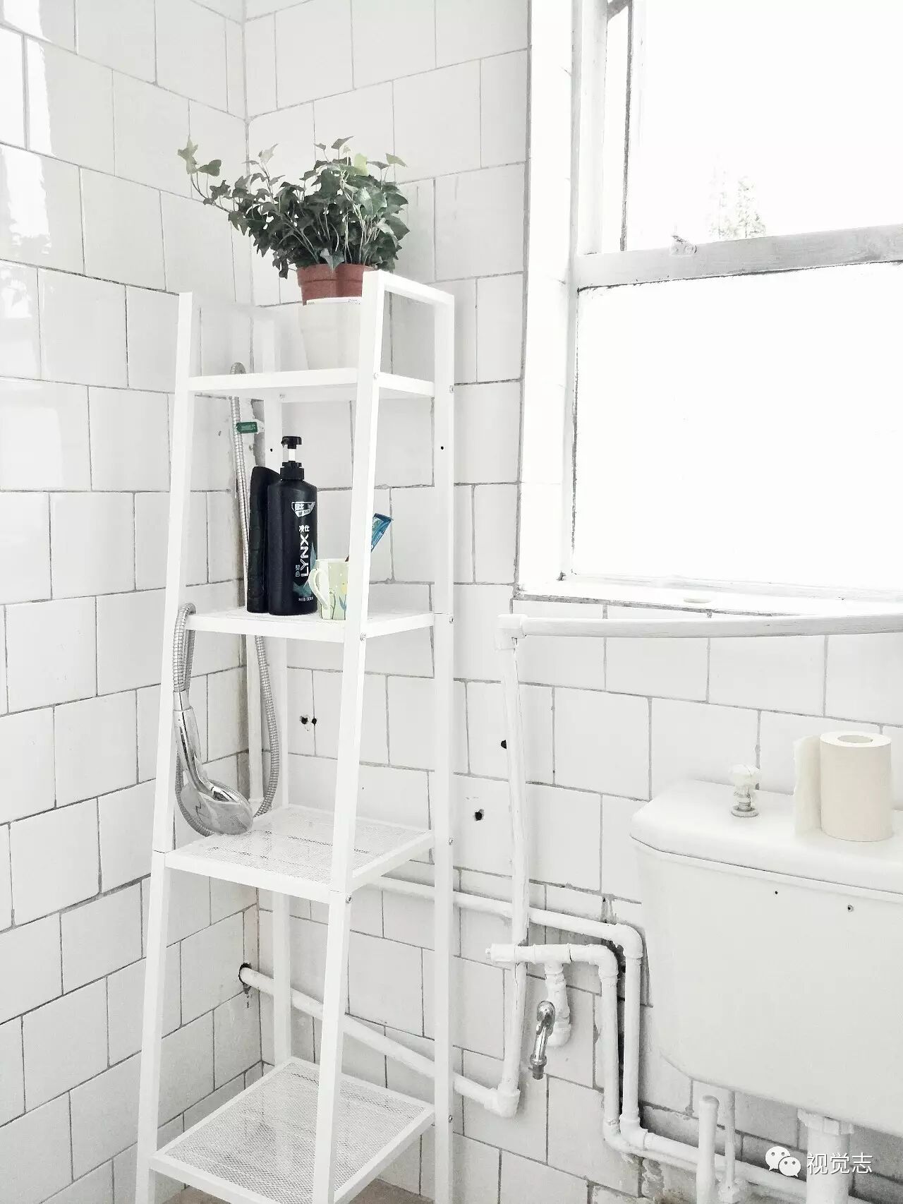 卫生间简单刷白,放了置物架。
