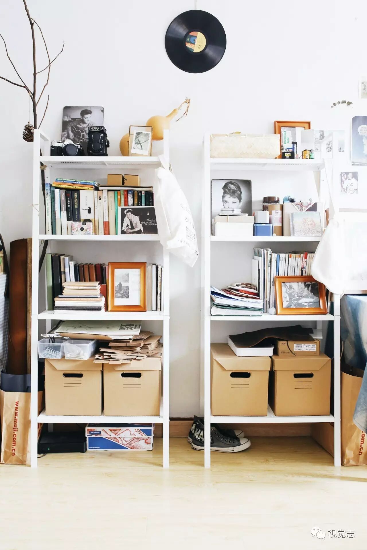 喜欢读书,床的对面就放置了2个书架。