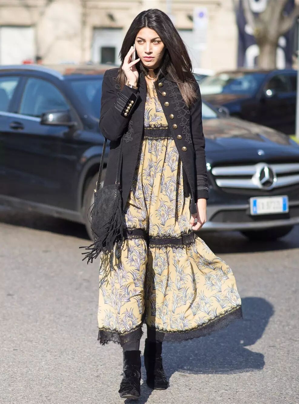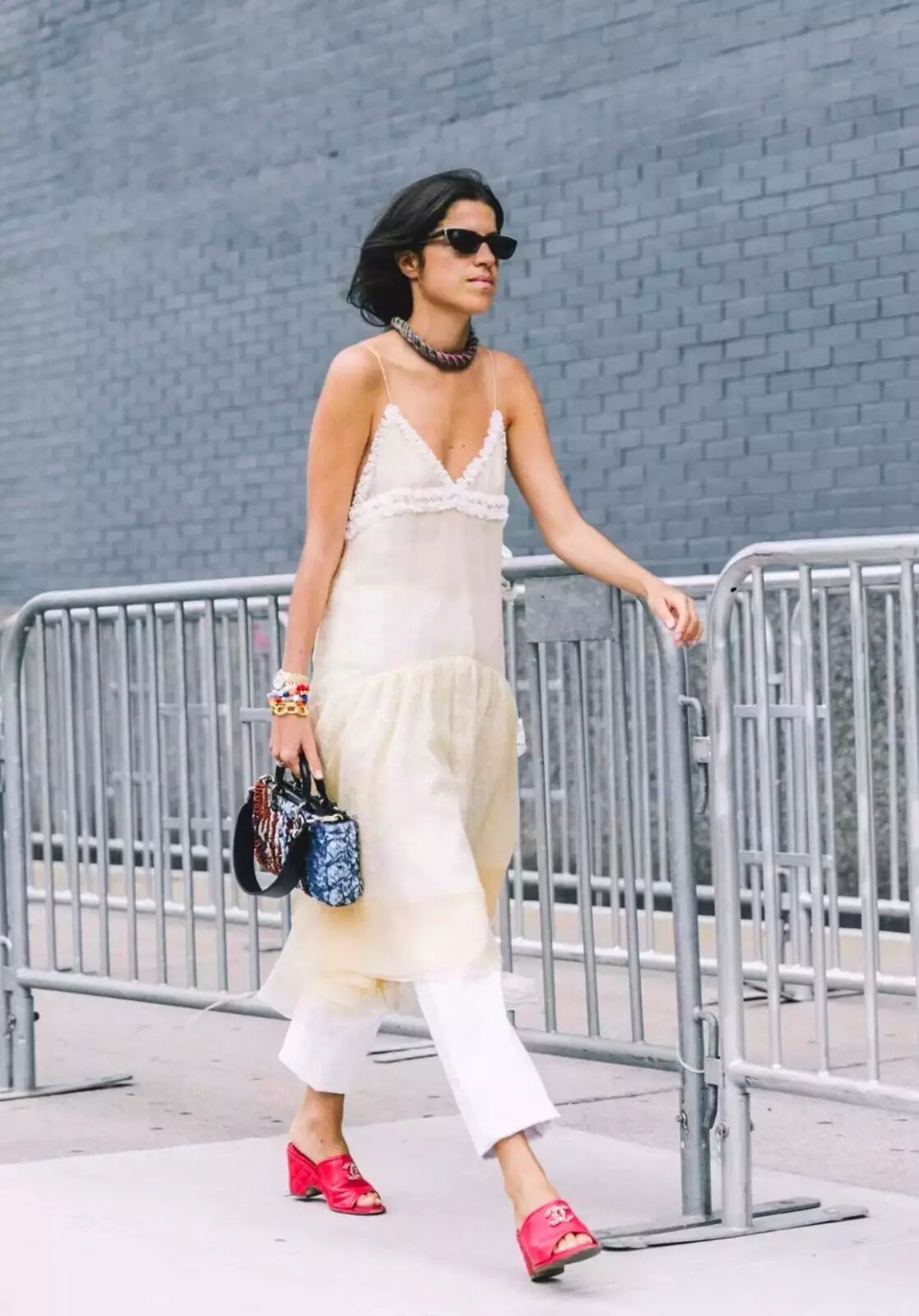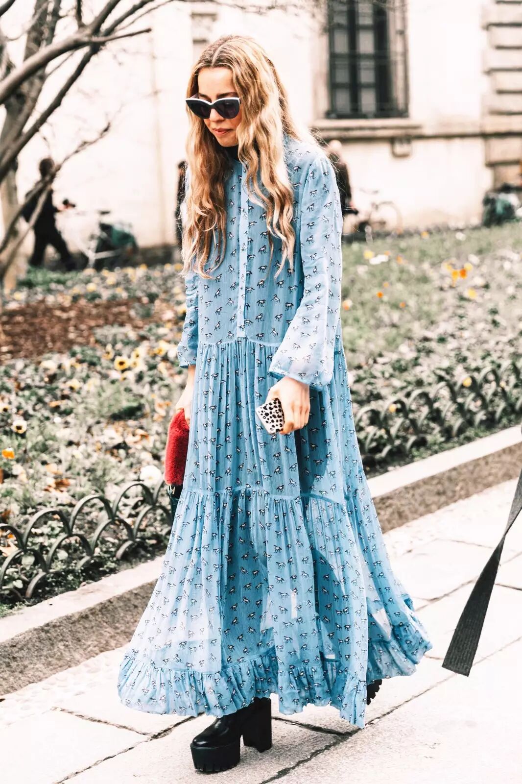 " Y0 |5 v0 U! L* Z5 B9 |2越轻盈越好看如街拍所示,这种类型的裙子多由雪纺、薄纱和轻薄棉质制成,上身显得格外轻盈。天气马上要转暖了,不失为一个好选择。