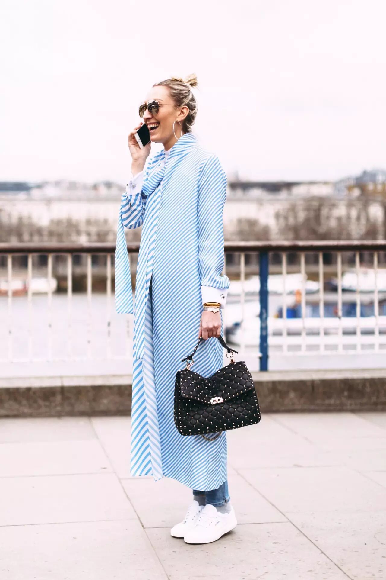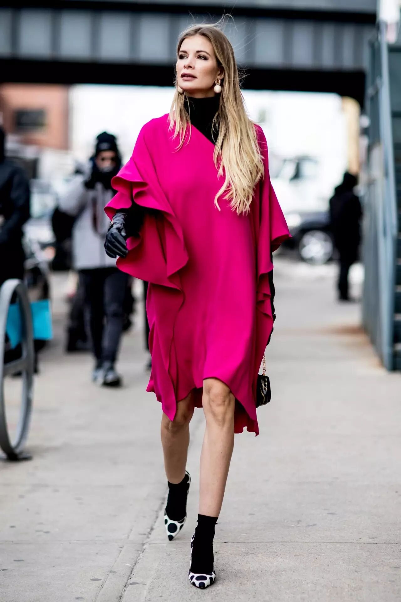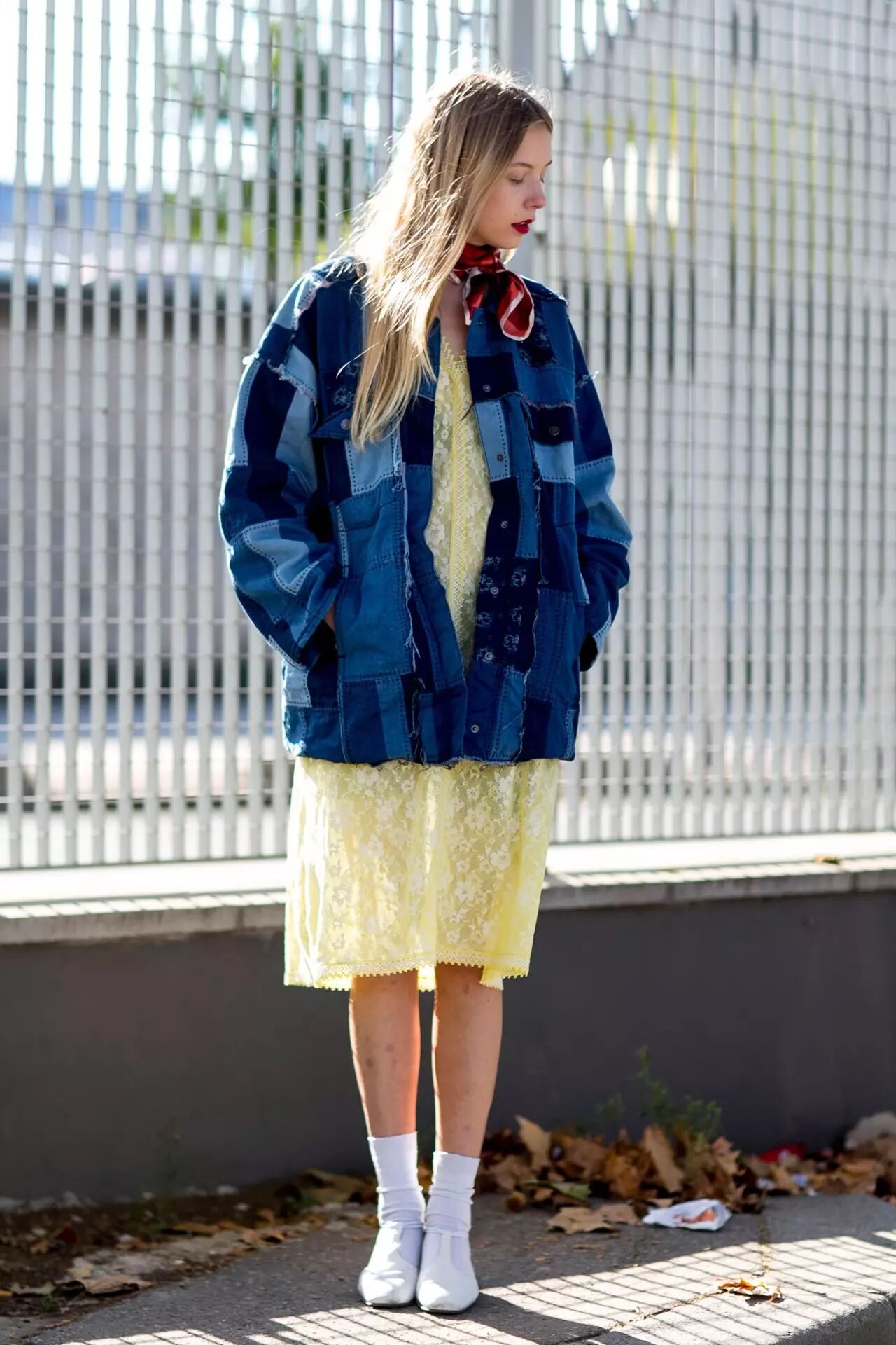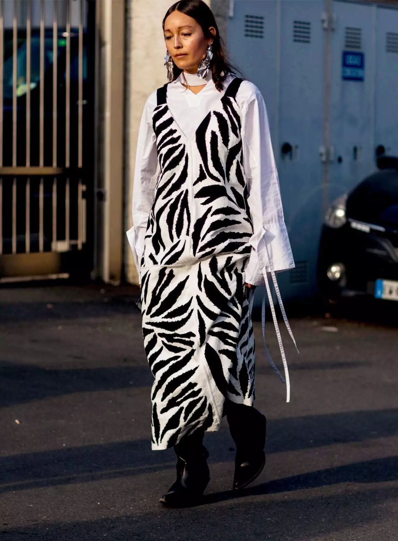 " Y0 |5 v0 U! L* Z5 B9 |2越轻盈越好看如街拍所示,这种类型的裙子多由雪纺、薄纱和轻薄棉质制成,上身显得格外轻盈。天气马上要转暖了,不失为一个好选择。
