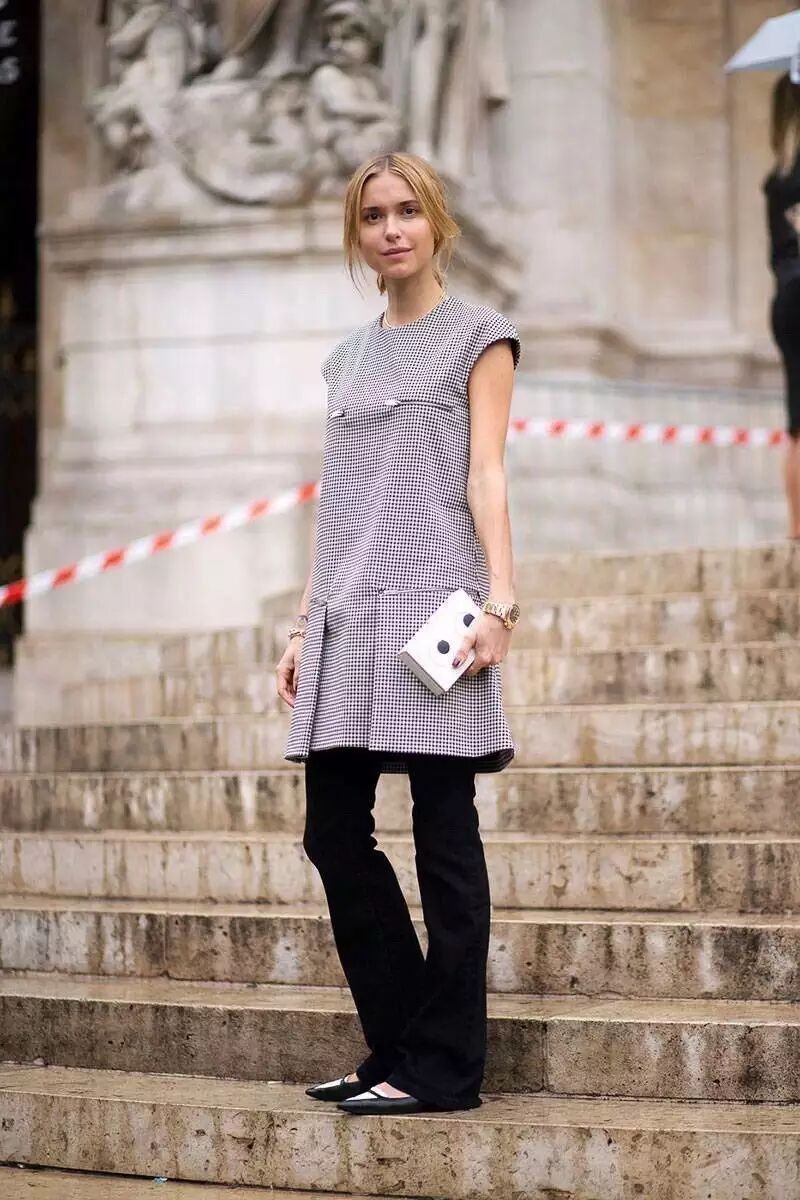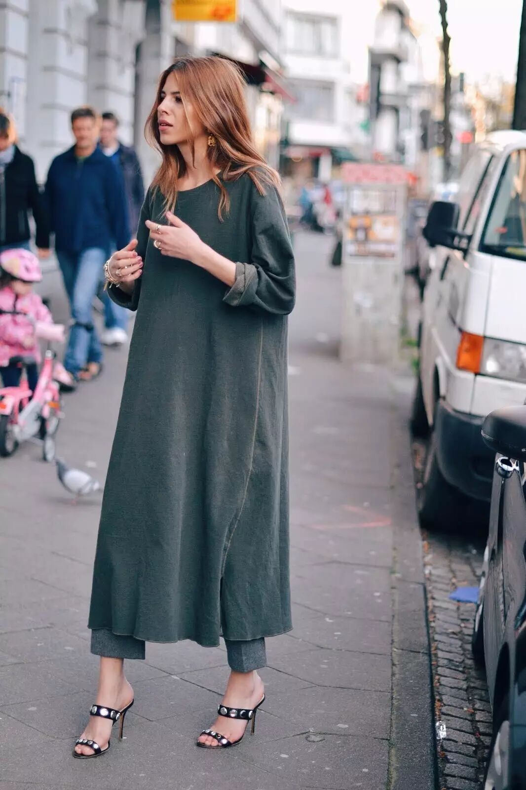 3下面搭配长裤穿裙子+裤子的穿法从去年就开始火起来了,不如就让它再火一阵吧!宽松休闲的无腰身连衣裙搭配干练利落的长裤,是有个性又养眼的搭配哦!